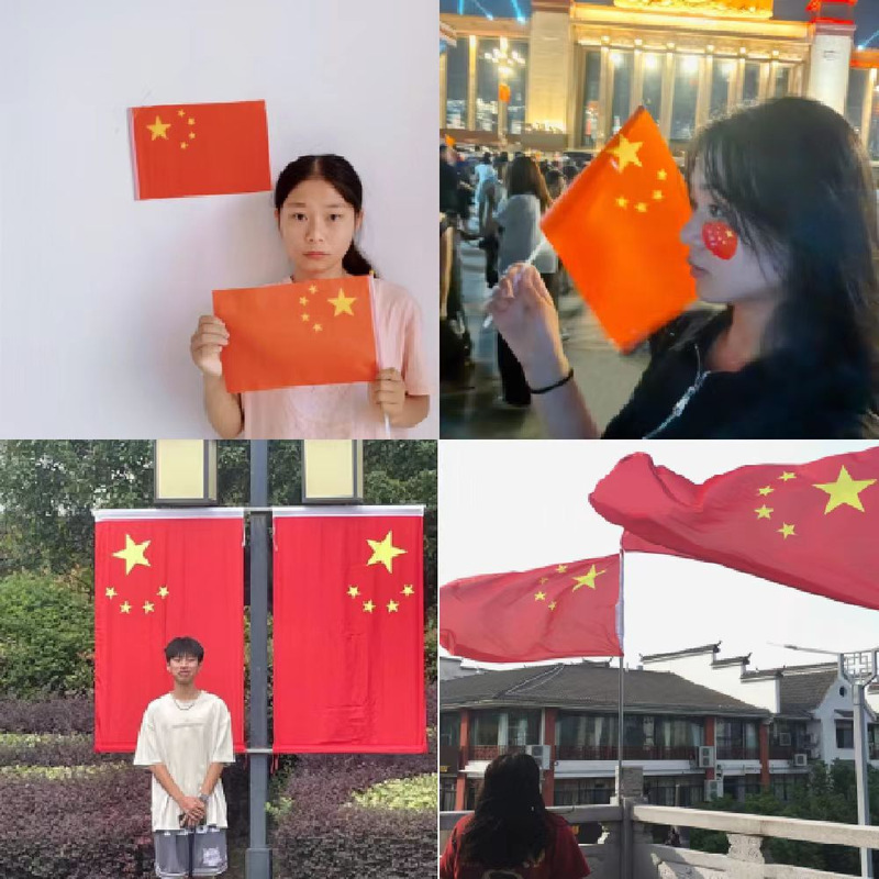 一张张笑颜定格在镜头下,将自己的身影与鲜艳的五星红旗定格在一起,崇敬的目光中流露出对祖国的热爱之情。最美是那一抹红——中国红。有一种骄傲,叫“五星红旗”,有一种深情,叫“我爱你中国”。同学们以最为朴素,最为简单的方式,为祖国献上最诚挚的祝福。