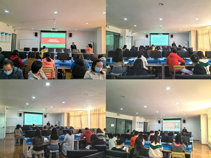 以学铸魂,恪守初心。学院党委书记陈维佳以“筑牢信仰之基,一严到底推进作风建设”为题开展师德师风专题讲座,从大兴学习之风、大兴务实之风、大兴清廉之风三方面号召全体教职工涵养高尚师德,锤炼专业素养,深刻诠释师德内涵,发挥模范引领作用,切实改善和提升教师教育形象。他要求,一是规范教育教学行为,查摆日常行为思想问题;二是弘扬高尚师德文化,扎实推进作风建设;三是充分发挥党员表率作用,营造立德树人良好氛围;四是搭建教师发展平台,提升师资队伍师德素养。