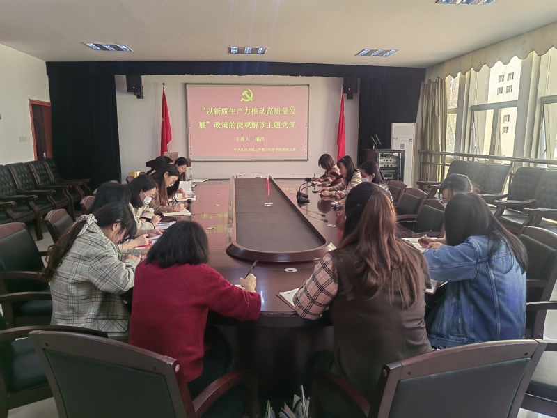 数字经济学院教师支部于3月28日下午举行了专题学习会,学院副院长姚洁同志为大家上了一堂《“以新质生产力推动高质量发展”政策的微观解读》主题党课。