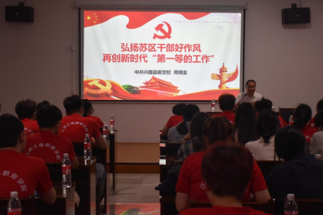 4月28日上午,中共兴国县委党校周炳金老师以“弘扬苏区干部好作风”为题为学员们上红色专题党课,党课概述了苏区的形成与发展,列举了“苏区干部好作风,自带干粮去办公,日着草鞋干革命……”的事迹,体现了苏区干部的艰苦朴素及优良作风。周炳金老师告诫大家作为青年优秀骨干,要不断提升自己的政治素养,学习红色历史,赓续红色精神,时刻注意自己的言行举止,发挥好优良的“传帮带”作用,续写时代华章。
