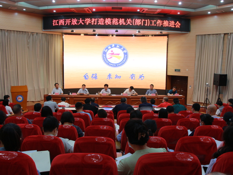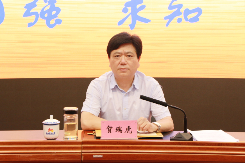 6月16日上午,江南官方体育官方入口(China)官方网站召开打造模范机关(部门)工作推进会,校党委书记贺瑞虎出席并讲话,校党委副书记邓文君就如何推进工作做了布置。在家校领导、处级干部及青山湖校区科级干部共100余人参加会议。校党委副书记、校长黄平槐主持会议。