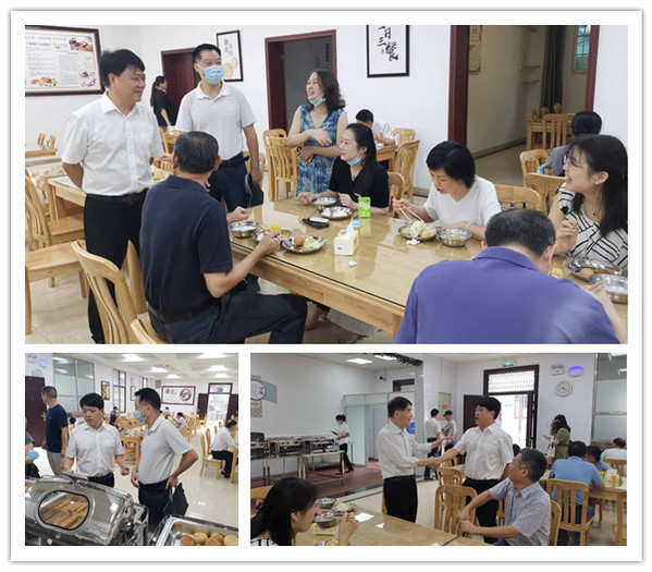 校党委书记贺瑞虎来到食堂,与正在用餐的老师交谈,询问他们第一天的用餐体验。老师们纷纷表示,自助餐模式满足了口味差异与营养需要,还实现了“光盘”。从环境设计到就餐服务都有了极大提高,学校太给力了!