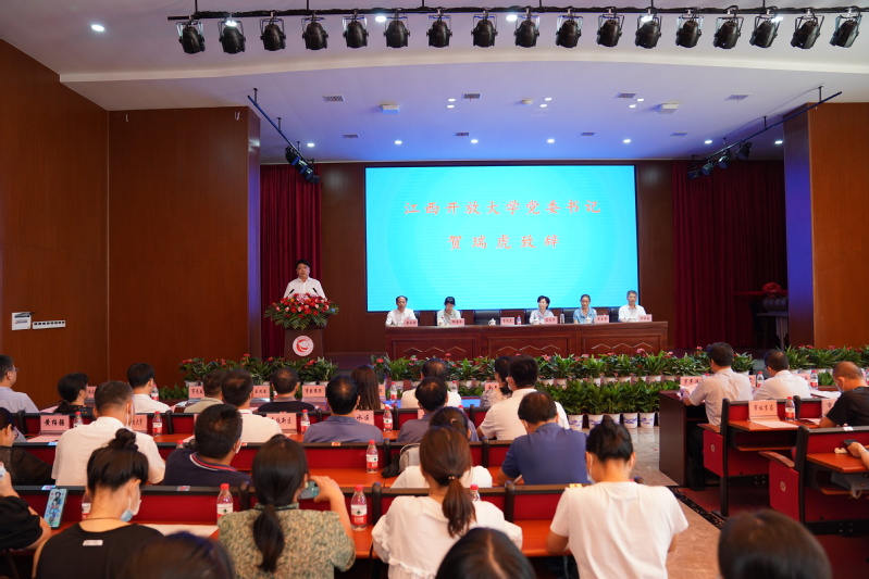 贺瑞虎在仪式致辞中指出,开放大学长期立足地方、面向基层通过互联网办学,开展老年教育具有天然优势,是我国老年教育体系的重要组成部分。新余老年开放大学的成立,是落实中央和省委要求,适应时代发展,满足老年人需求的具体举措,对于完善我省老年开放大学体系、更好为老年人提供优质教育,促进全民终身学习具有重要意义。基于此,贺瑞虎对新余老年开放大学办学工作提出三点希望:一是提高站位,办讲政治有情怀的老年大学。二是推动创新,办高质量有特色的老年大学。三是健全体系,办老年人家门口的老年大学。
