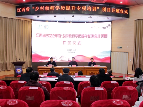 12月17日上午,江西省2022年度乡村教师学历提升专项培训班开班仪式在江南官方体育官方入口(China)官方网站举行。省委教育工委委员、省教育厅总督学曹伴好出席并讲话。国家开放大学党委委员、副校长李松线上出席。
