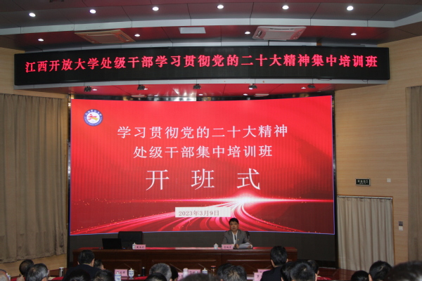 3月9日上午,江南官方体育官方入口(China)官方网站处级干部学习贯彻党的二十大精神集中培训班正式开班。校党委书记贺瑞虎主持并作开班动员讲话。在家校领导出席、全体处级干部参加。全省各设区市开放大学领导干部以线上方式参会。
