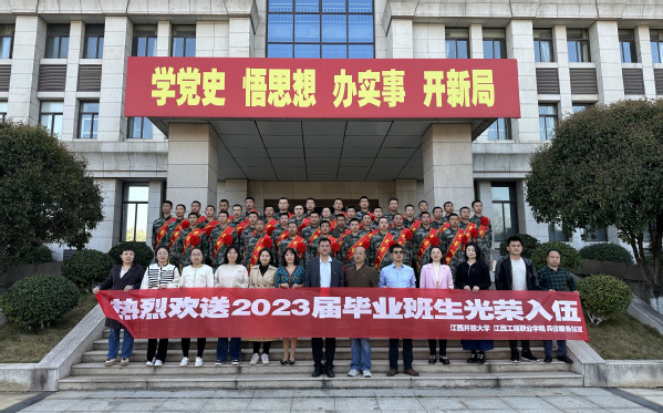 3月14日下午,学校2023年春季入伍学生欢送会在南昌市西湖区武装部举行。校人武部部长张世麒、校人武部全体工作人员、毕业班辅导员代表、2023年春季入伍学生共50余人参加了此次欢送会。