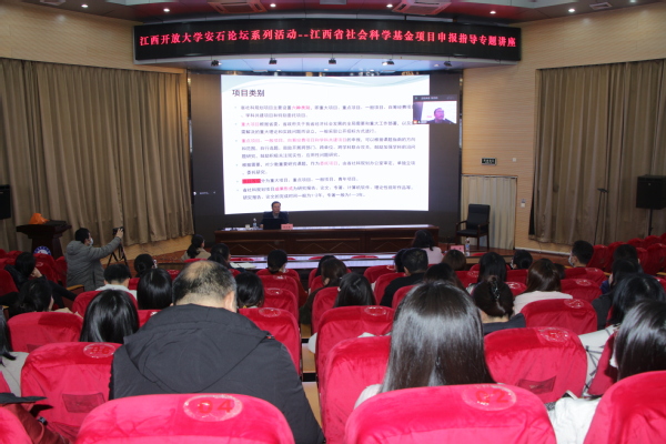 为进一步提升学校科研水平,增强教职工的科研素养,3月29日下午,学校特邀江西师范大学学报杂志社总编戴利朝教授为我校专业技术人员做“江西省社会科学基金项目申报指导”专题讲座。全校各学院、各部门100余人现场参与,其余教师通过线上方式收看。科研管理处处长张睿教授主持讲座。