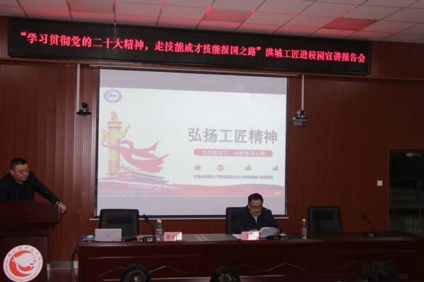 为深入学习贯彻习近平新时代中国特色社会主义思想和党的二十大精神,引导广大师生树立正确的人生观、成才观、择业观,让劳模工匠精神激励广大师生为学校事业发展再立新功,4月6日,学校在西湖校区举办“学习贯彻党的二十大精神 走技能成才技能报国之路”大国工匠进校园宣讲报告会,邀请南昌市第三届“洪城工匠”、江西省技术能手、江西赣菜烹饪艺术大师、中国好厨师、亚洲十大青年名厨、江西省餐饮业优秀企业家黄卫星为师生作专题报告。全校专、兼职辅导员及120多名学生代表聆听了此次报告。