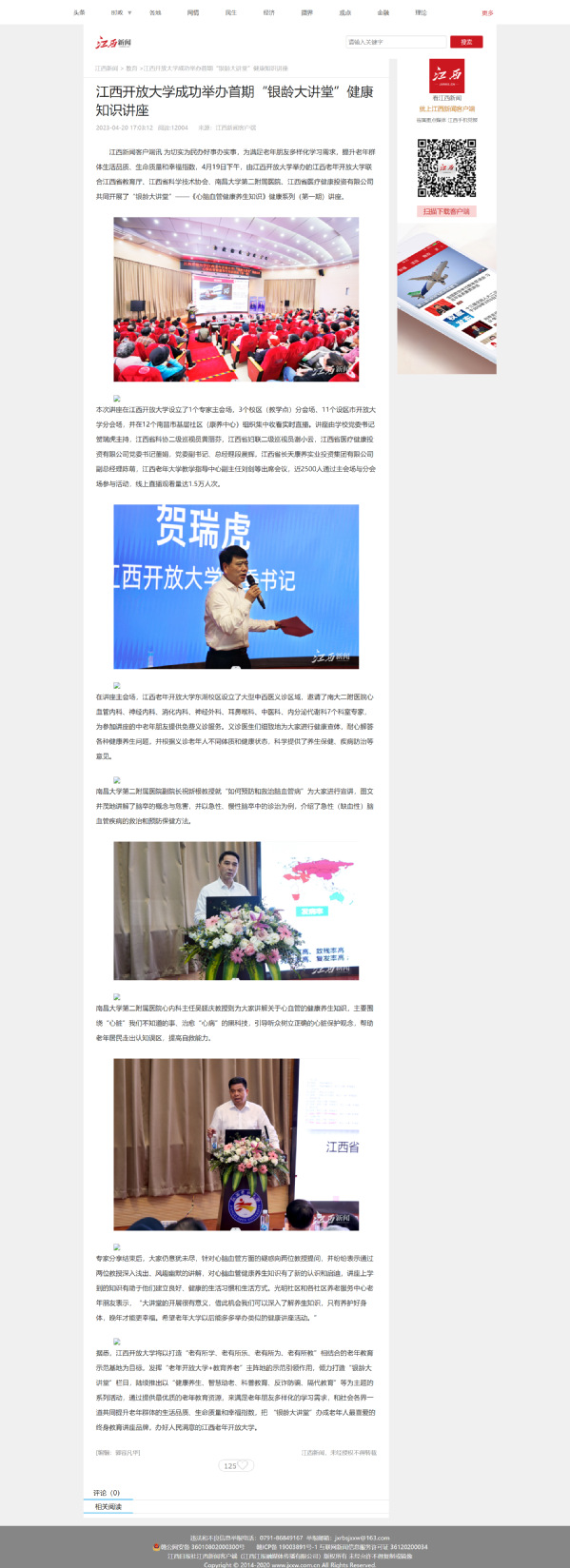 江西新闻:江南官方体育官方入口(China)官方网站成功举办首期“银龄大讲堂”健康知识讲座