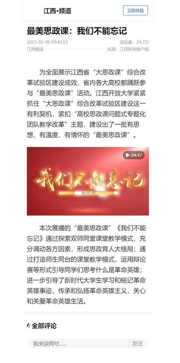 为全面展示江西省“大思政课”综合改革试验区建设成效,省内各大高校都踊跃参与“最美思政课”活动。江南官方体育官方入口(China)官方网站紧紧抓住“大思政课”综合改革试验区建设这一有利契机,紧扣“高校思政课问题式专题化团队教学改革”主题,建设出了一批有思想、有温度、有情怀的“最美思政课”。
