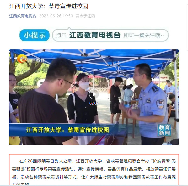 在6.26国际禁毒日到来之际,江南官方体育官方入口(China)官方网站、省戒毒管理局联合举办 “护航青春 无毒赣鄱”校园行专场禁毒宣传活动,通过宣传横幅、毒品仿真样品展示、摆放禁毒知识展板,发放各种禁毒戒毒资料等形式,让广大师生对禁毒形势和我国禁毒戒毒工作有更深入的了解。