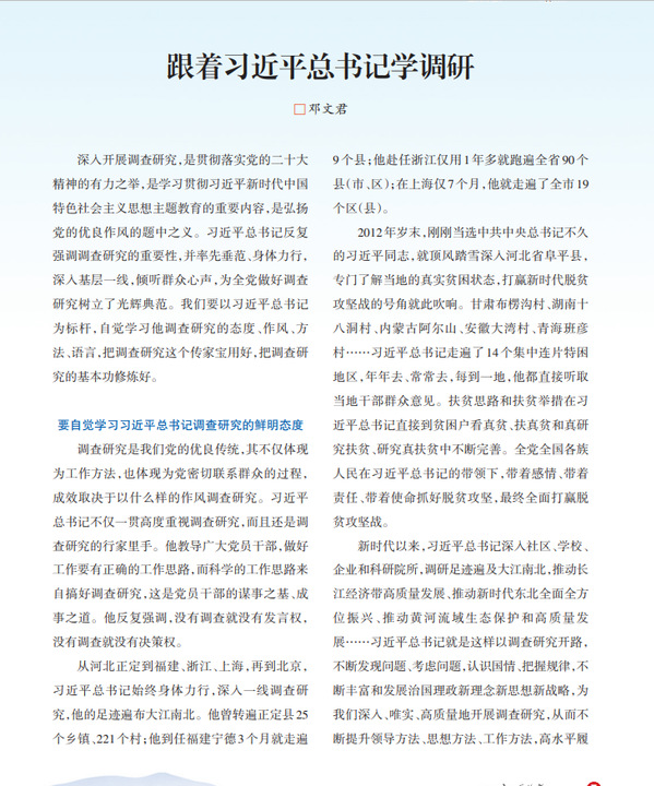 邓文君在《江西教育》发表文章《跟着习近平总书记学调研》