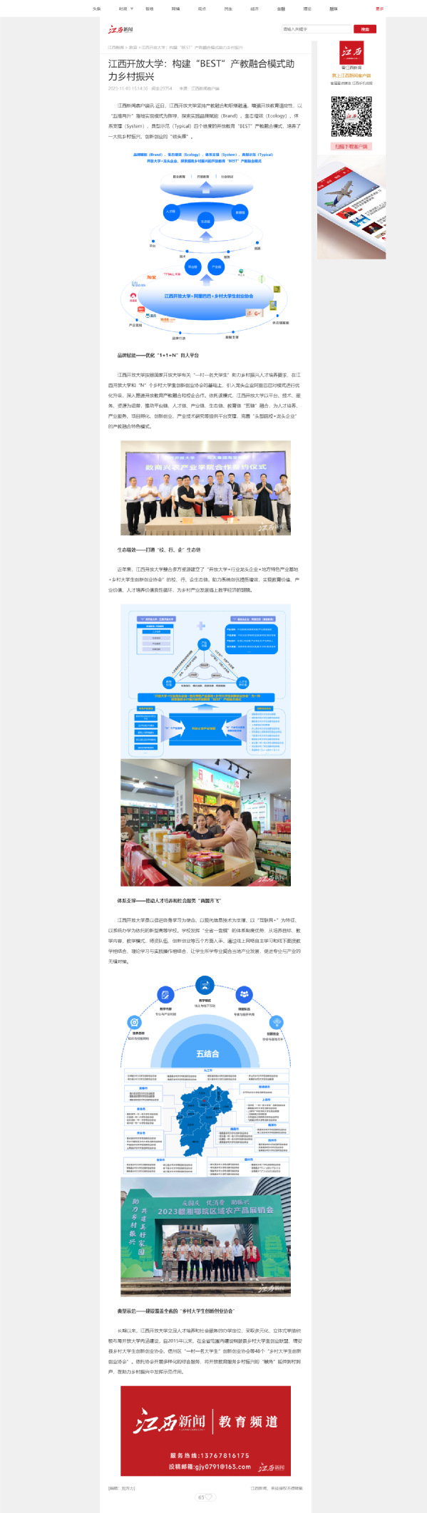 近日,江南官方体育官方入口(China)官方网站坚持产教融合和职继融通,增强开放教育适应性,以“五维两升”落地实现模式为指导,探索实践品牌赋能(Brand)、生态增效(Ecology)、体系支撑(System)、典型示范(Typical)四个维度的开放教育“BEST”产教融合模式,培养了一大批乡村振兴、创新创业的“领头雁”。