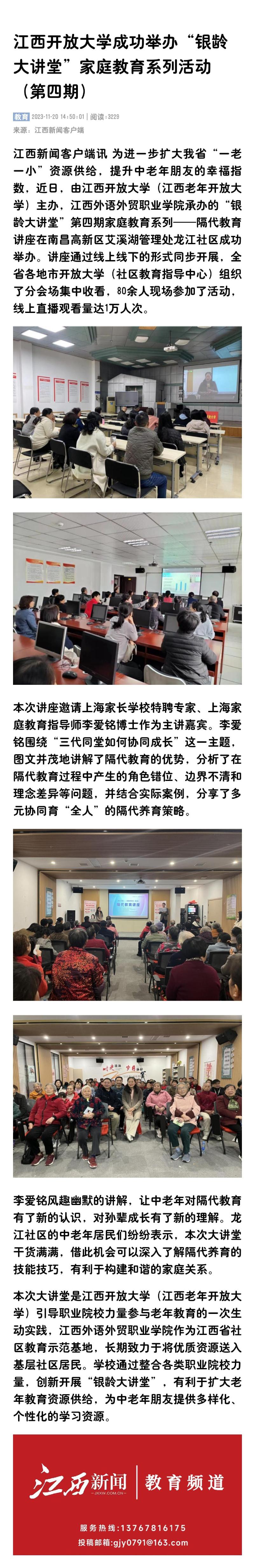 江西新闻:江南官方体育官方入口(China)官方网站成功举办“银龄大讲堂”家庭教育系列活动(第四期)