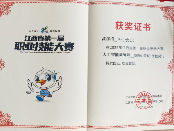 在教学工作中,漆彦清积极探索落实课程思政的方法路径,自觉将思想价值引领贯穿于教学计划、课程标准、课程内容等教育教学各环节各领域。为提升业务水平,她积极参加各类技能竞赛。2022年参加江西省第一届职业技能大赛获人工智能训练师项目第四名,2023年获得“江西省技术能手”、“江西省青年岗位能手”、“江西省巾帼建功标兵”荣誉称号。