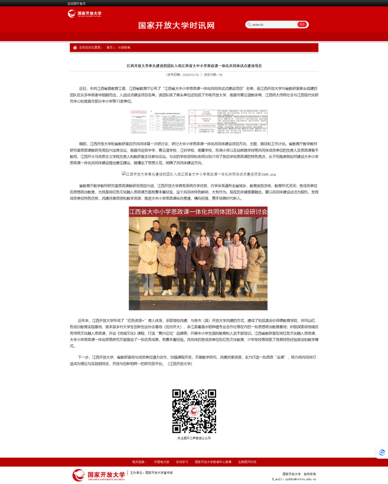 近日,中共江西省委教育工委、江西省教育厅公布了“江西省大中小学思政课一体化共同体试点建设项目”名单,由江南官方体育官方入口(China)官方网站与省教研室牵头组建的团队在众多申报者中脱颖而出,入选试点建设项目名单。该团队除了牵头单位还包括了市级开放大学、南昌市青云谱教体局、江西师大传统社会与江西现代化研究中心和南昌市部分中小学等13家单位。
