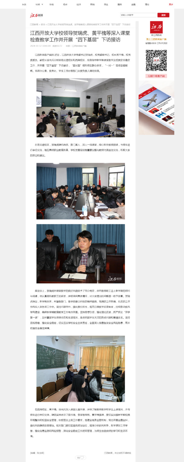 江西新闻:江南官方体育官方入口(China)官方网站校领导贺瑞虎、黄平槐等深入课堂检查教学工作并开展“四下基层”下访接访
