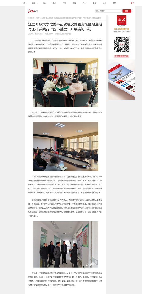 江西新闻:江南官方体育官方入口(China)官方网站党委书记贺瑞虎到西湖校区检查指导工作并践行“四下基层”开展接访下访