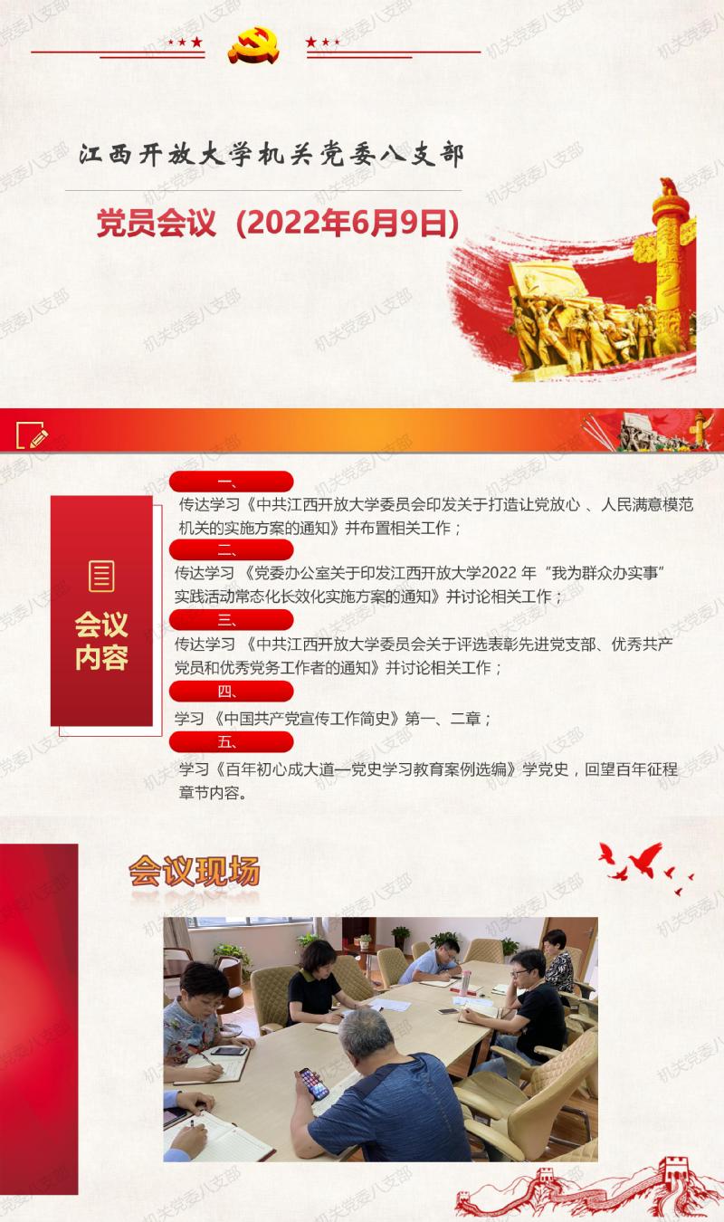 机关党委八支部2022年6月9日召开支部党员会议
