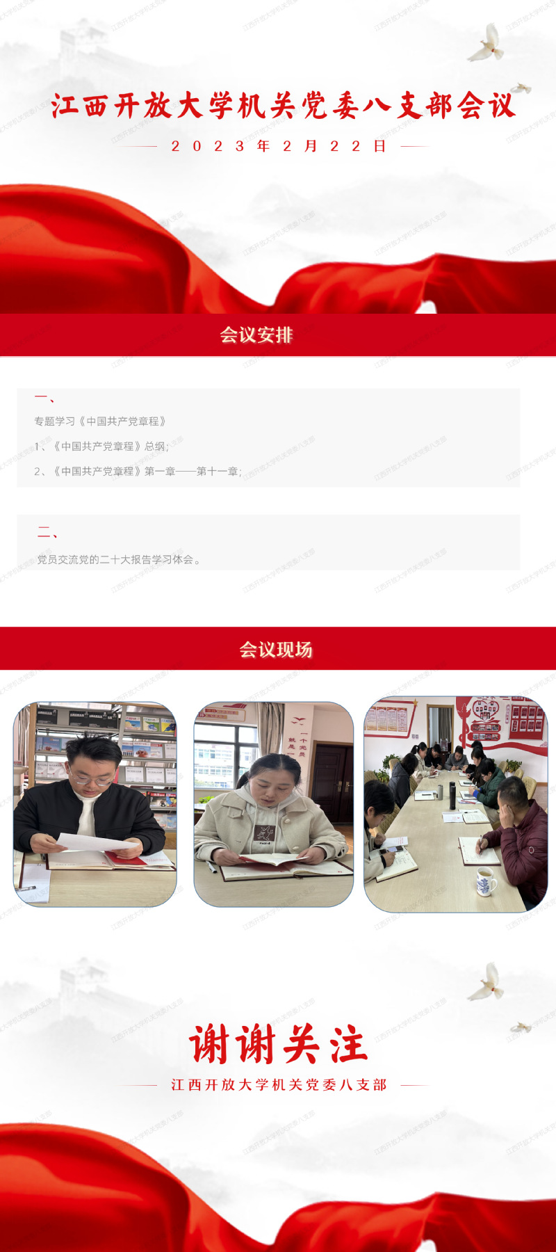 江南官方体育官方入口(China)官方网站机关党委八支部2023年2月22日召开支部党员会议