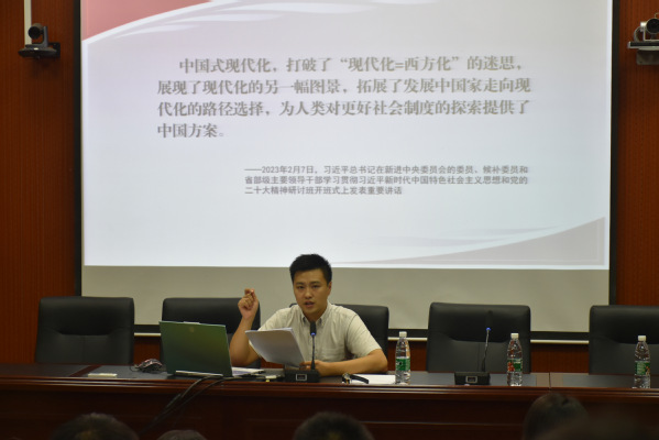 9月16日上午,省委办公厅人事处干部、江西省省直机关青年宣讲团成员、江西省赣青突击队常务副队长王骁同志受邀为我校2023年第四期“青马工程”学员进行理论宣讲,深入学习宣传贯彻党的二十大精神,引领广大青年牢记习近平总书记的殷殷嘱托,立志做有理想、敢担当、能吃苦、肯奋斗的新时代好青年。