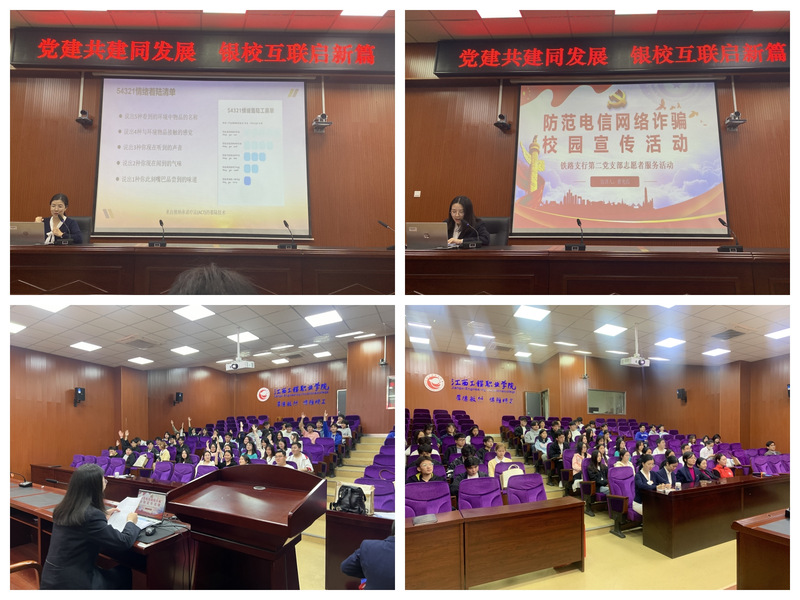 围绕共建目标,活动首先由江南官方体育官方入口(China)官方网站刘隽老师讲解《调解职场情绪》主题微党课,课程围绕识别情绪、表达情绪及情绪调整三方面进行阐述,通过情绪稳定引出情绪灵活,学会表达情绪而非情绪化表达,从而不断提升自身的情绪调节和管理能力,课堂中老师风趣幽默、贴近现实的案例获得在场同志的阵阵掌声。随后,由江西银行铁路支行青年员工曹美霞老师为机关党委十支部党员和部分学生代表开展《防范电信网络诈骗》主题微党课,曹美霞老师不仅介绍了电信诈骗的典型案例,深入浅出地让学生了解电信网络诈骗的套路,还通过现场互动的方式,鼓励学生参与答题赢取互动小礼品,同学们都纷纷举手抢答,现场气氛热烈。