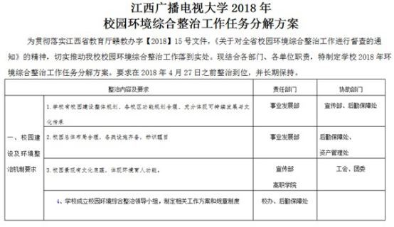 为贯彻落实全省校园环境综合整治工作会议精神和省教育厅《关于进一步加强校园环境整治工作的通知》精神,深入开展校园环境综合整治工作,进一步优化校园育人环境和促进校园文化建设,我校党委、行政高度重视、精心部署、迅速行动。