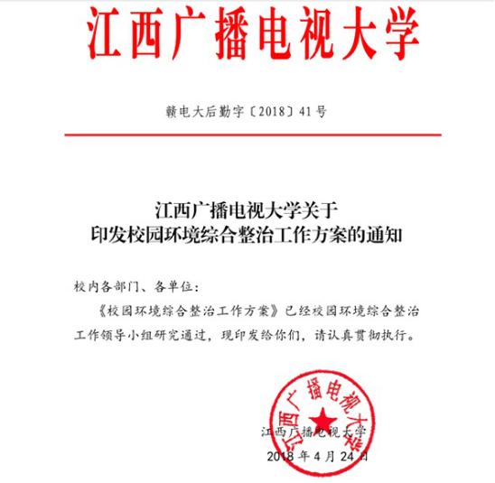 经过齐抓共管、多措并举,师生的工作、学习、生活环境得到了较大的改善,校园环境更加优美,校园环境综合治理取得了阶段性成果,但校园环境综合整治工作任重而道远,电大人还将尽心竭力、全力以赴,创建更加和谐平安美丽校园。