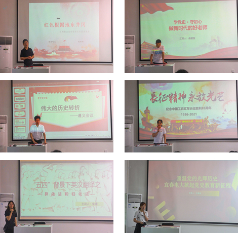 为进一步丰富党史学习教育形式,贯彻落实习近平总书记在党史学习教育动员大会上的重要讲话精神,在全校范围内掀起传承红色基因、恪守教育初心、践行立德树人热潮。6月21日,我校开展了“重温辉煌党史 恪守教育初心”微党课竞赛活动。 微言传大义,学史颂党恩。微党课竞赛活动启动以来,参赛教师认真准备,精心打磨,联系工作实际,紧紧围绕主题,用小故事诠释大道理,从不同的角度,以真挚的情感、生动的事例讲述了党的优良传统和共产党人的初心使命。