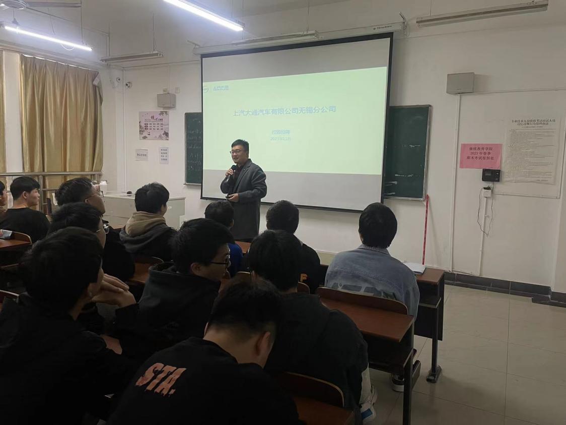 为扎实推进“稳就业”“保就业”决策部署和我院2024届毕业生就业工作,进一步加强校企合作,为我院学生提供丰富的就业信息和就业渠道,学院于11月27日下午、11月29日下午分别组织开展两场聘宣讲会,特邀苏州汇川技术有限公司、宁波环球广电科技有限公司、上汽大通汽车有限公司等企业来校招聘,参加招聘宣讲的学生共计200余人。