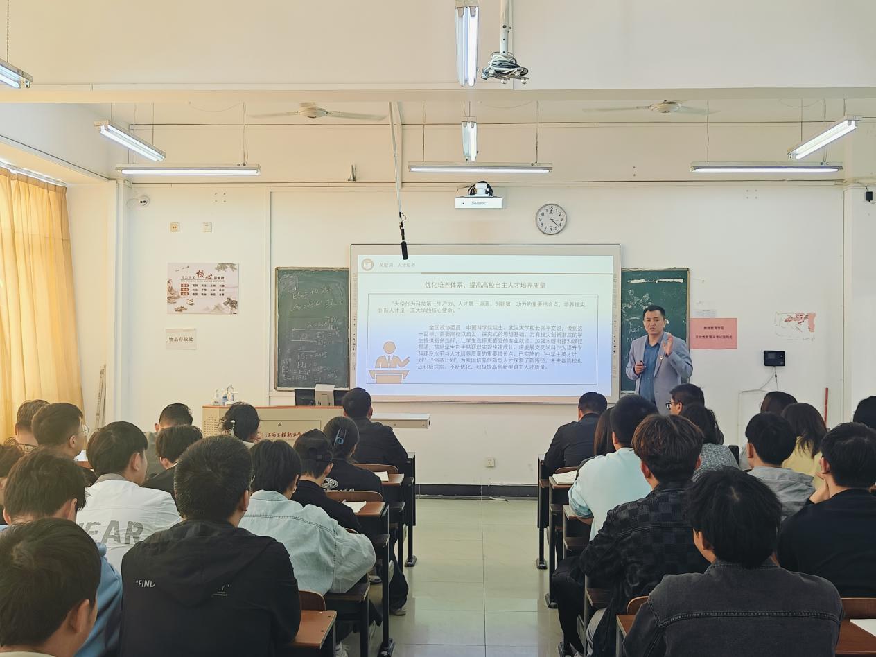 为深入学习贯彻习近平总书记重要讲话和全国两会精神,聚焦“走在前、勇争先、善作为”的目标要求。勉励师生踔厉奋进,持续推动学院高质量发展,3月28日下午,学院党委书记张世麒在西湖校区402教室以“实施科教兴国战略,强化高质量发展”为主题,为全体师生党员及入党积极分子讲授了一场专题党课。
