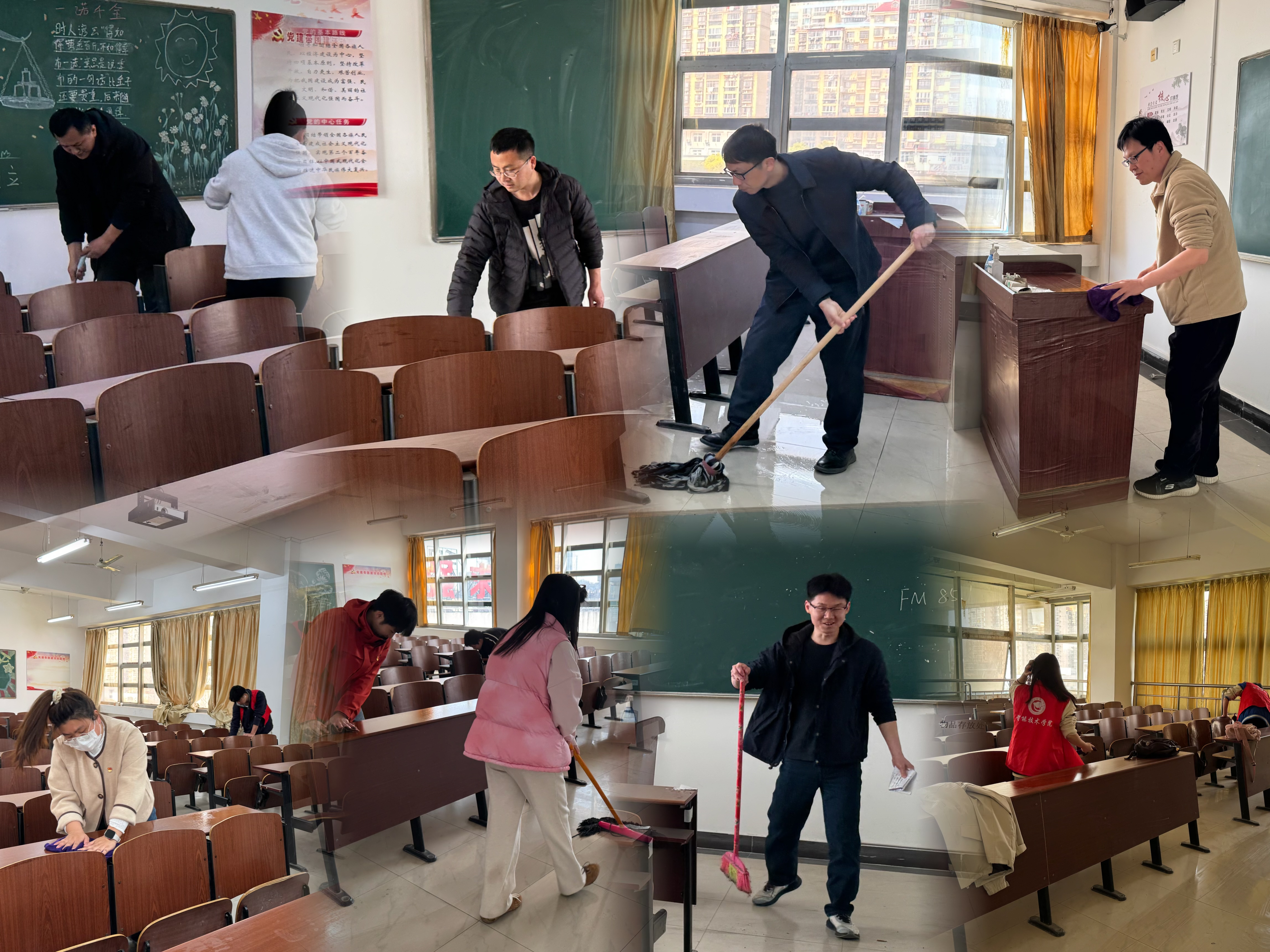 为营造整洁舒适的学习环境,增强师生的劳动意识和团队协作精神,近日,智能技术学院教师支部和学生支部组织党员教师和学生志愿者共同开展了教室卫生大扫除活动。