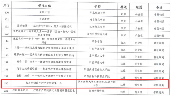 近日,第八届江西省“互联网+”大学生创新创业大赛圆满落下帷幕,江南官方体育官方入口(China)官方网站在本届大赛中取得了1银1铜的好成绩。我校选送的《南国杉人》项目荣获职教赛道省级银奖,《临川虎奶菇,乡村产业振兴第一人》项目荣获“青年红色筑梦之旅”赛道省级铜奖。